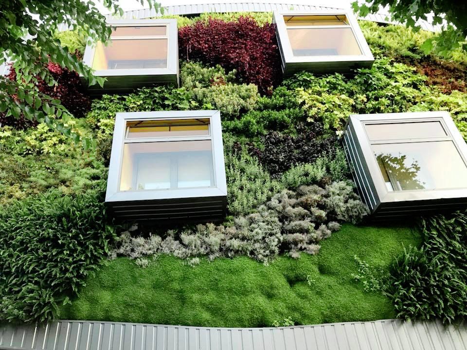 A vertical garden is a technique used to grow plants on a vertically suspended panel by using hydroponics. These unique structures can either be freestanding or attached to a wall. One of our main goals is to create living works of art. Therefore the next step is determining which plants to use. We strategically select species based on features such as colour, texture, pattern and size in order to achieve the greatest visual effect. The amount of light and moisture a plant require differs hugely from specie to specie and these are essential aspects we consider before placement. Our design strategy for indoor living walls is to maximize the number of species that are best at improving air quality. For our outdoor green walls we consider how the plants will evolve over the course of the year. We aim to create living walls that are interesting and beautiful at all times. Therefore bloom time, flower and foliage colour, and the use of evergreen plants are all factors in our design process.